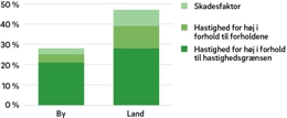 For høj hastighed var et betydeligt problem både i by og på land I op mod en tredjedel af ulykkerne i byzone var for høj hastighed medvirkende til, at ulykkerne skete, eller at personskaderne blev alvorligere. Det var således et betydeligt problem i lighed med landzone, hvor det medvirkede til ca. halvdelen af ulykkerne og skaderne.