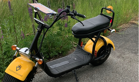 Endelig skal vi da også lige byde velkommen til det nyeste køretøj i samlingen: Vores nye elknallert, som vi bruger ved visuelle inspektioner på cykelstier. Den gør det nemt at komme frem, og den er lidt mere bekvem og trafiksikker end elløbehjulene, som vi introducerede til formålet sidste år.