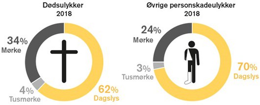 I forhold til de øvrige ulykker, hvor personer kommer til skade sker flere af dødsulykkerne i mørke.