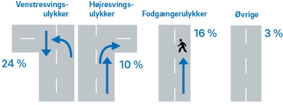 Undersøgelsens grundlag og begrænsninger Tværanalysen bygger på 270 dybdeanalyserede ulykker fra 10 forskellige temaundersøgelser. De 270 ulykker er sammenlignet med den landsdækkende ulykkesstatistik på en række parametre som f.eks. ulykkessituation, trafikanttyper, og trafikantalder. Der er på mange punkter god overensstemmelse. Da ulykkerne samtidig udgør en vis volumen med over 500 involverede trafikanter, så forventes det, at de generelle træk, der tegner sig på tværs af ulykkerne, kan være nyttige i arbejdet med at forebygge trafikulykker. Undersøgelsens resultater skal dog ses i lyset af, at der ikke er tale om statistik, og at den bygger på undersøgelser foretaget over ca. 10 år, hvor der løbende er sket en udvikling af køretøjer, veje, trafik samt trafikantadfærd.