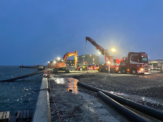 Det er ikke hverdagskost at løse sådan en opgave, så det gjorde den ekstra spændende. Operationen startede kl. 11.00, og tog længere tid end de varslede fire timer. Faktisk blev der arbejdet til kl. 22 fordi det blæste voldsomt. Heldigvis var vindretningen rigtig, og det voldsomme vejr havde den fordel, at der ikke var nogen sejlende, der vovede sig ud på vandet.