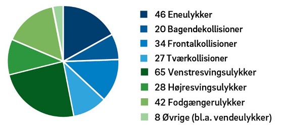 Ofte medvirkede flere forhold til, at en ulykke skete – der var sjældent kun en enkelt årsag, men når man ser samlet på alle de forhold, der medvirkede til de 270 ulykker, så var for høj hastighed og uopmærksomhed blandt de hyppigste.